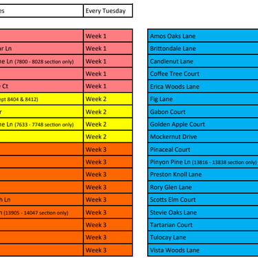 According to the Association’s Governing documents, the Association must regularly take care of the front yard lawn area only. This will only include mowing, edging & blowing. Aerating, seeding and fertilizing will NOT be included. The Association cuts the front yards once a month between April and September. The schedule for your section and timeframe is attached by ZONE. 60’ lots do not pay for or receive any lawn services to their yards.